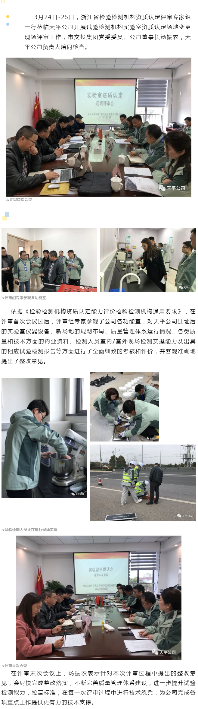 天平公司通過試驗檢測機構實驗室資質認定場地變更現(xiàn)場評審工作